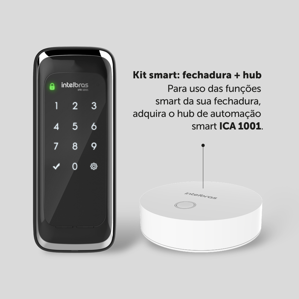 A fechadura smart sobrepor IFR 1001 faz parte do ecossistema IZY de casa inteligente da Intelbras. Através da sua fechadura smart, é possível gerar comandos para abrir cortinas, ligar ou apagar luzes, visualizar imagens de câmeras, ligar e desligar equipamentos e muito mais. A IFR 1001 conta com abertura por até 100 senhas e remotamente através do app IZY. Sua alimentação é feita por 4 pilhas AA com duração média de 10 meses (considerando 10 acessos diários). A fechadura smart IFR 1001 conta com funções como travamento automático, função não perturbe, gerenciamento de acessos e usuários de forma totalmente remota (necessário aquisição de um hub de automação IZY para habilitar as funções de casa inteligente e app – item vendido separadamente). Com instalação de sobrepor, possui uma das instalações mais fáceis do mercado.